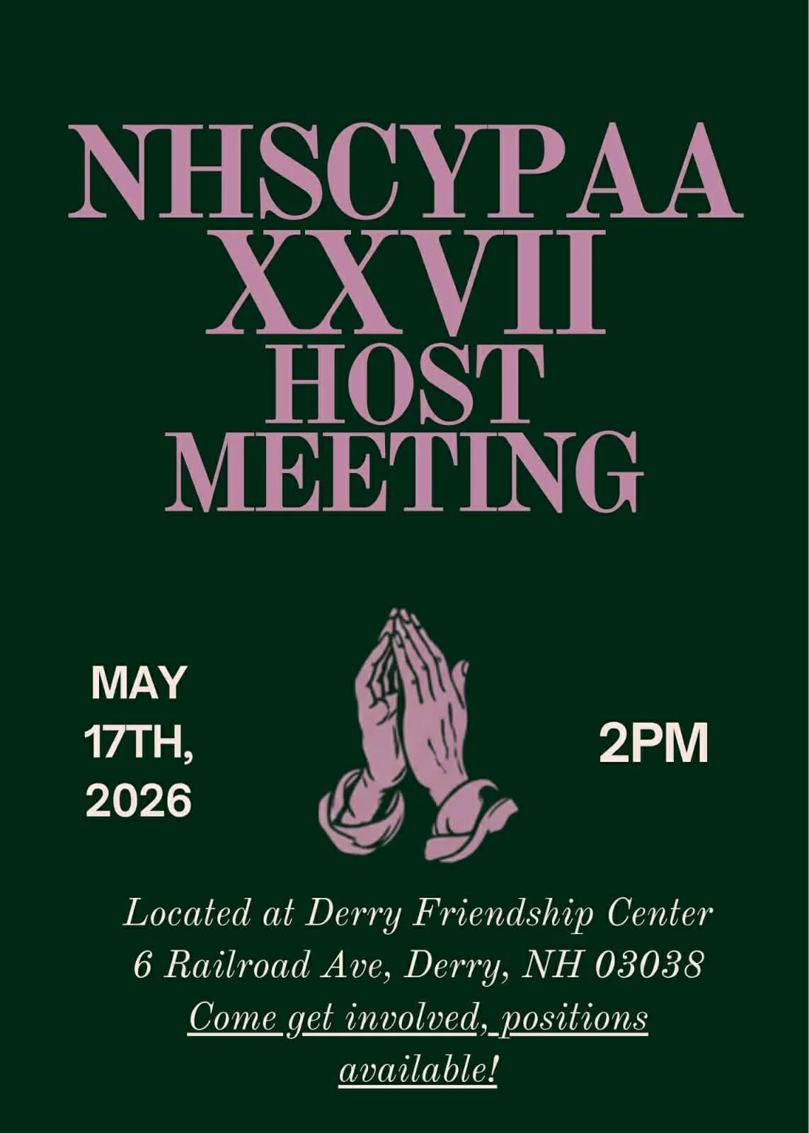 NHSCYPAA XXVII needs you! We are looking for volunteers to help with security detail, hospitality sponsorship, and marathon meeting sponsorship slots at our conference! With your help, we will keep this the safest and most fun conference NH has ever seen!